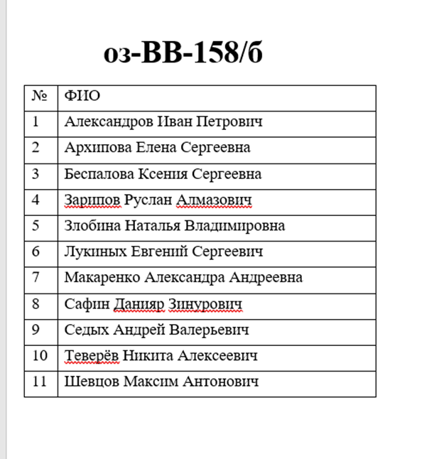 Специальности / ВВ (очно-заочная форма обучения) / 1 курс